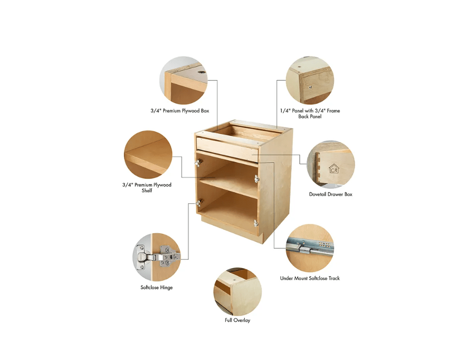 Drawer Box: 5/8″ Hardwood Sides & Ends, 3/8″ Plywood Bottom